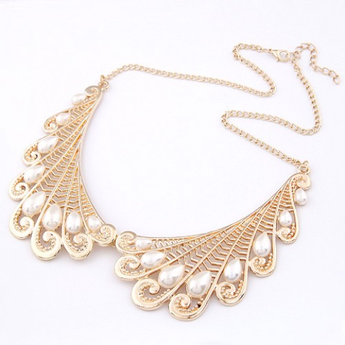 Sjieke kraag collier verguld met filigrain versieringen en parels.