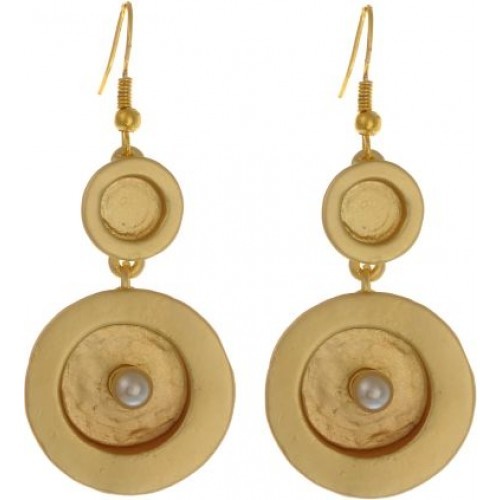 Leuke design oorhangers met een kleine parel in de holling van de cirkelvormige design, De oorhangers zijn verzilverd en verguld. (een laagje zilver of goud)
